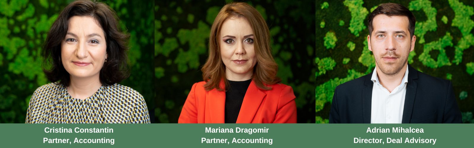 Cristina Constantin și Mariana Dragomir au fost numite în funcția de Outsourcing – Accounting Partner, iar Adrian Mihalcea în funcția de Deal Advisory Director, cu scopul de a consolida și dezvolta expertiza și capacitatea firmei în domenii cheie ale business-ului.