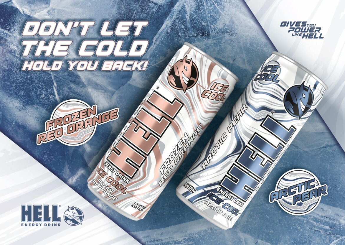 La fiecare început de iarnă, HELL ENERGY lansează cele două arome ICE COOL, iar gusturile ediției 2023 sunt portocalele roșii și combinația de pere cu smochine. Ca și restul gamei, aromele de iarnă în ediție limitată, HELL ICE COOL Frozen Red Orange și HELL ICE COOL Arctic Pear, au același conținut de cofeină de 32 mg/100 ml, 5 vitamine B, fără conservanți. Mai mult, sunt disponibile în doze de aluminiu, cu design unic și reciclabile la infinit, contribuind astfel la un viitor sustenabil.